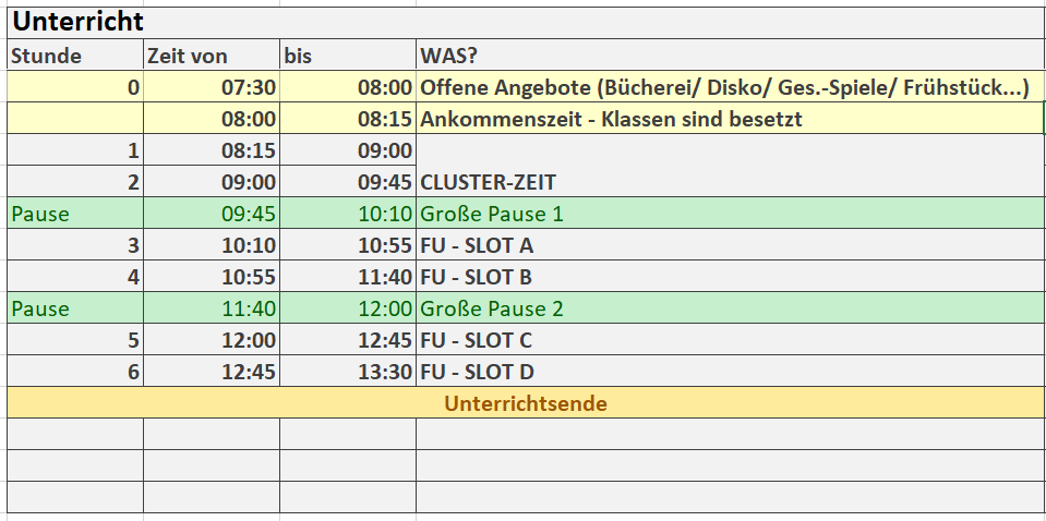 Unterricht, OGS, die Klassen, Unterrichtszeiten, Schulleben usw...