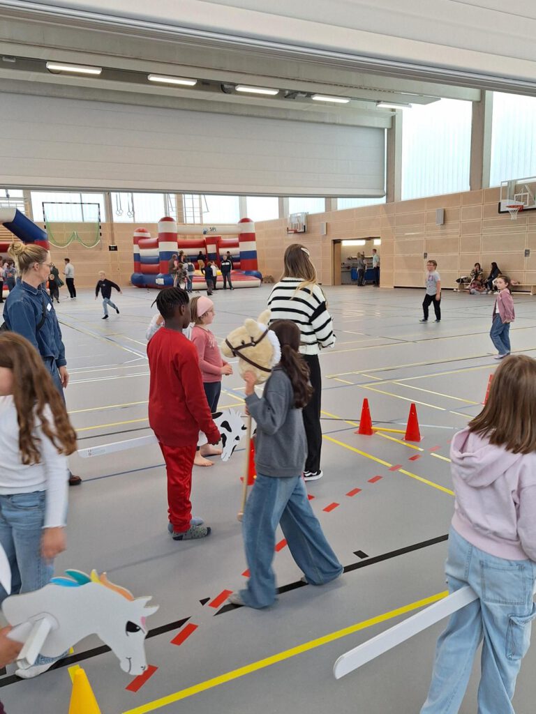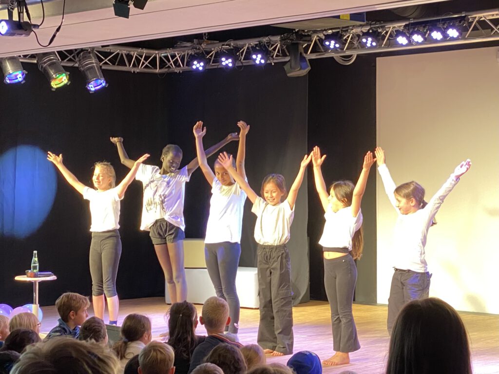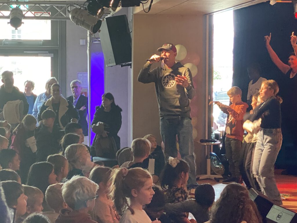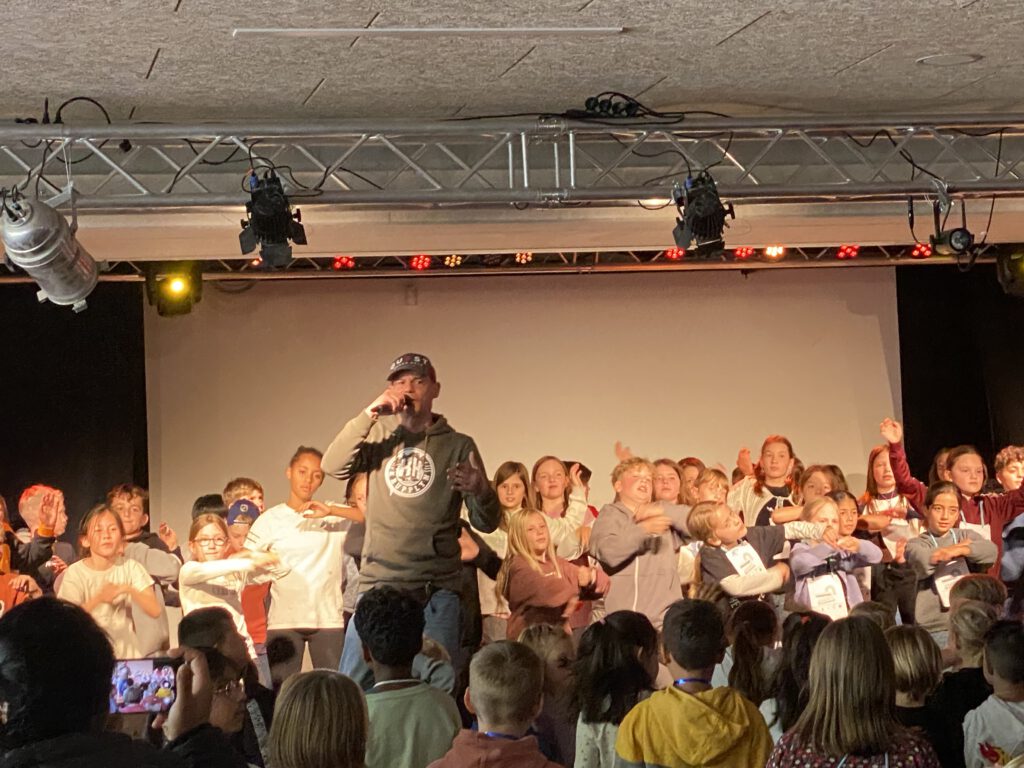 Kurz vor Ende der Veranstaltung heizte das KX-Team mit einem Tanz- und Diskoprogramm in der Aula allen Kindern und Erwachsenen noch einmal ordentlich ein.