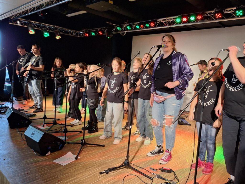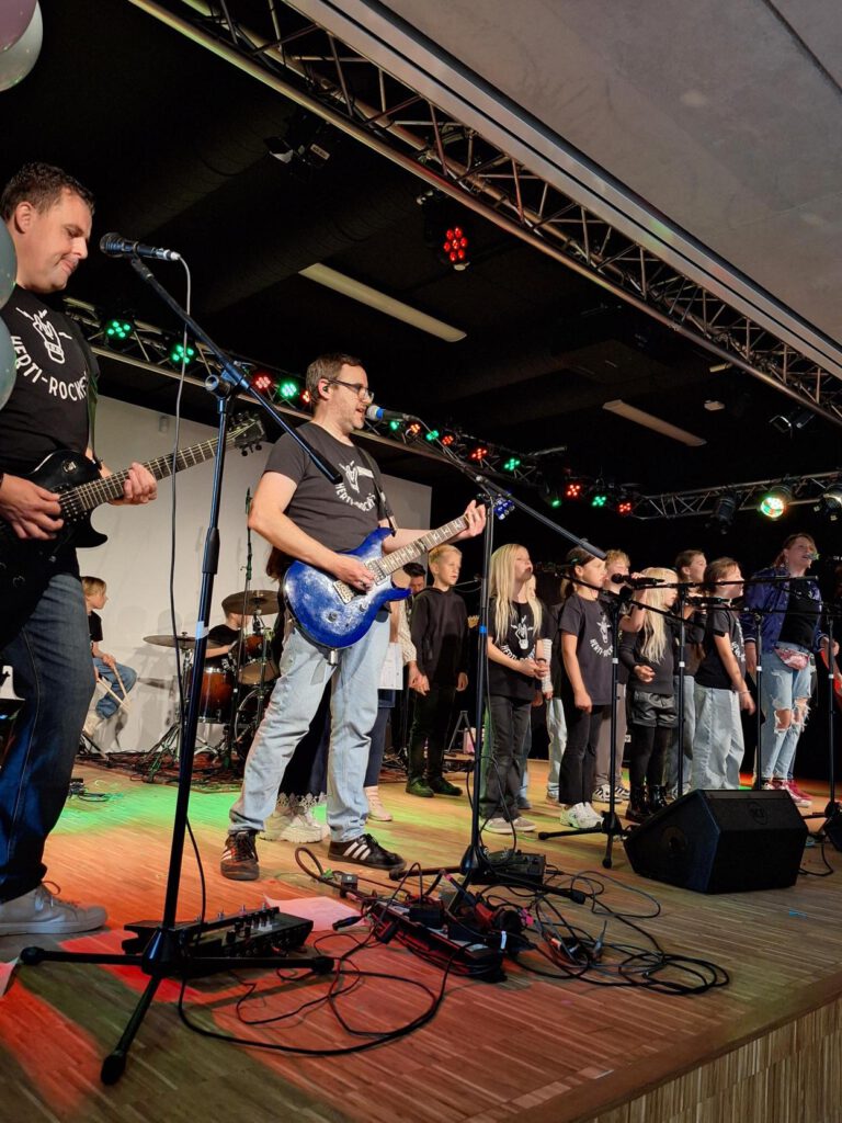 Und als ob das nicht schon genug wäre: Ab 15.00 Uhr traten dann die Herti-Rockers (unsere Eltern-Kinder-Kollegiumsband) in der Aula auf.